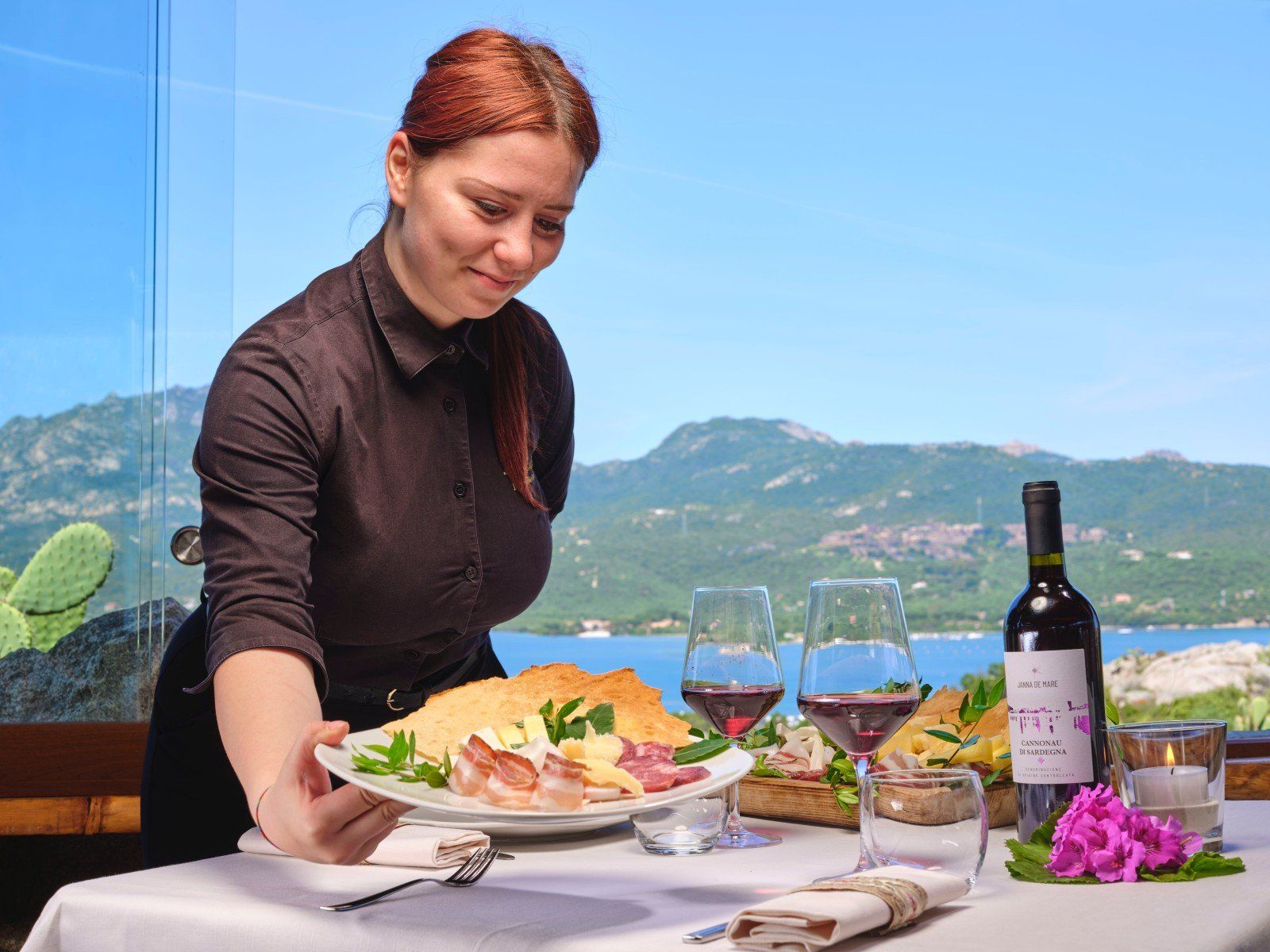 Tra le proposte più apprezzate figurano i formaggi tipici sardi, simbolo dell’arte casearia gallurese, accompagnati da pane carasau e miele. I primi piatti includono le ricette più tradizionali come gnocchetti sardi, ravioli e culurgiones, preparati con farine locali e condimenti profumati al sugo di carne o pomodoro fresco.