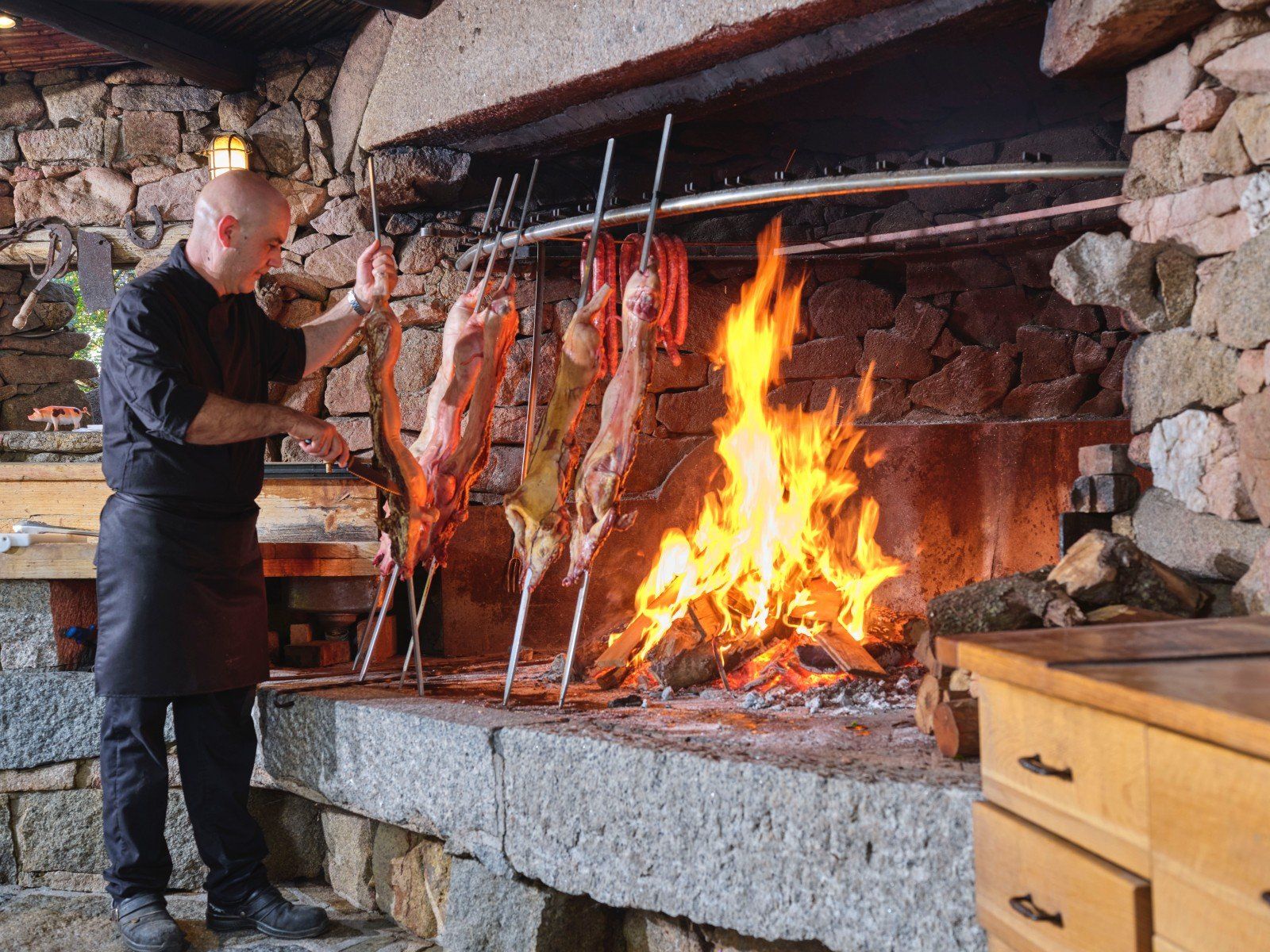 I secondi piatti portano in tavola il gusto autentico della carne sarda: maialetto allo spiedo, agnello e capretto arrosto, cucinati con maestria e serviti con contorni di verdure e patate locali. Tutto accompagnato da una selezione di vini sardi di grande pregio, come il Cannonau, il Vermentino o il Monica di Sardegna, scelti per esaltare i sapori della cucina.
